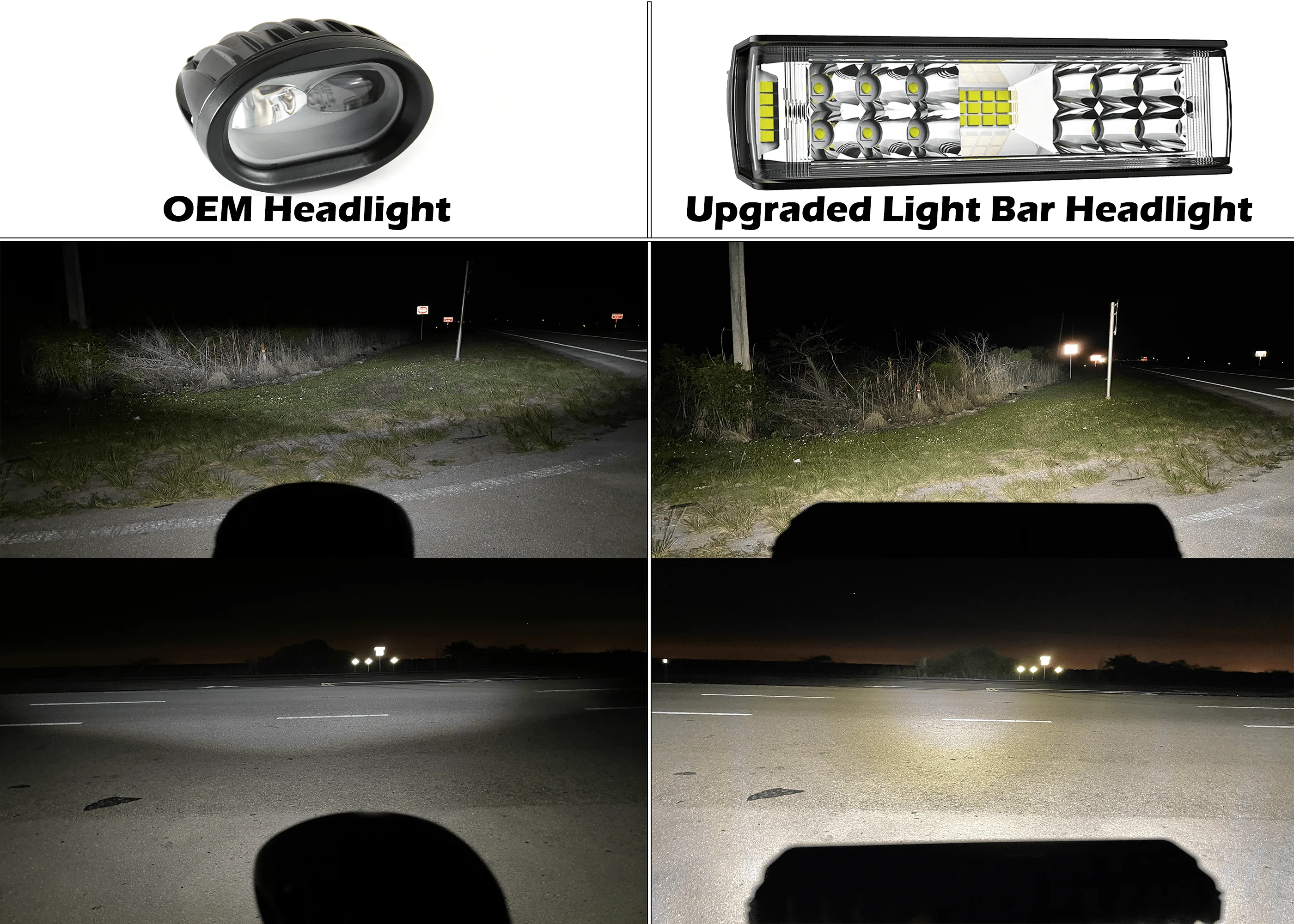 Riding at night just got a whole lot easier and safer. This time you’re going to see that pothole before it wrecks your tire. Score one for you! The GritShift Blinder LED Light Bar Headlight not only increases nighttime visibility, but it also makes your bike look like it belongs to a pro – because it does. Despite its slim design, this LED Light Bar is a total beast. We’re talking die-cast aluminum housing, shatterproof PMMA lenses, and a direct-fit installation kit. No modifications required. When it comes to OEM lighting versus the GritShift Blinder LED Light Bar Headlight, there’s really no competition. It’s easier to see and be seen with this upgraded LED Light Bar when compared to factory equipment.